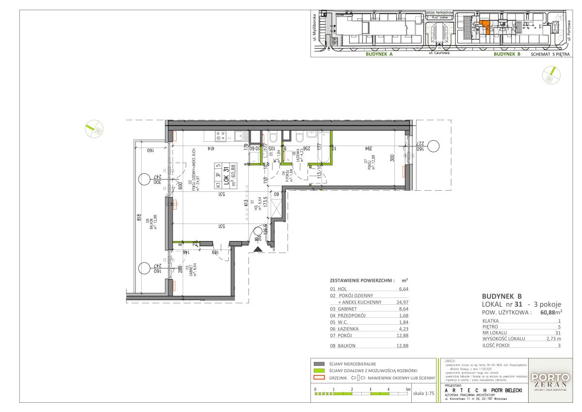- Powierzchnia:60,88 m2