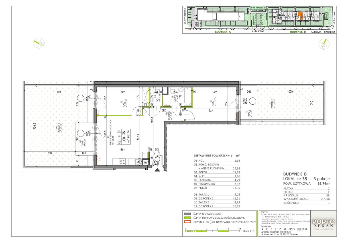 W ofercie znajdą się nieruchomości o zróżnicowanych metrażach – od 35 m2 do 93 m2, z układami od 1 do 4 pokoi, dużymi balkonami, loggiami, tarasami no i oczywiście nie zabraknie przestronnych ogródków. Wysokość pomieszczeń od około 273 cm do 295 cm. Garaż oraz komórki lokatorskie są usytułowane na kondygnacji podziemnej.
